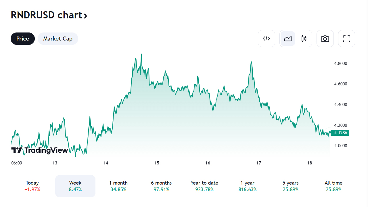 Render (RNDR) yakın zamanda yeni bir yıllık en yüksek seviyeye ulaşarak pazar performansında önemli bir kilometre taşı oldu. Bu başarı, 2023’teki %1.100’lük şaşırtıcı fiyat artışının ardından geldi ve Render (RNDR) piyasa değeri açısından ilk 50 kripto para birimi arasına girdi. Bu büyüme, Render (RNDR) potansiyeline olan ilginin ve güvenin arttığının bir kanıtıdır. Render (RNDR) fiyatı yukarı yönlü bir seyir izliyor, temel direnç seviyelerini aşıyor ve yeni ölçütler belirliyor. Tokenın fiyat hareketi, tüccarlar ve platformun dijital işleme için yapay zeka ve Blockchainden yararlanmaya odaklanan teknolojisine uzun süredir inananlar arasındaki yükseliş hissi ile desteklendi.