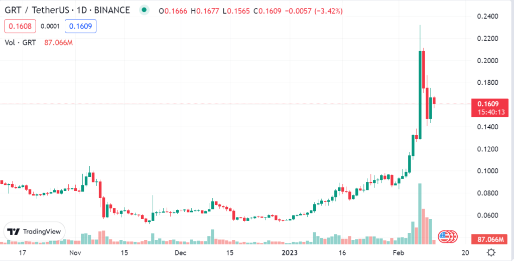 Dikkat edilmesi gereken son kripto olan Graph, son 24 saatte göre %5lik bir fiyat artışının ardından 0.1616 dolardan işlem görüyor. Buna ek olarak, GRT son yedi günde %45’ten fazla yeşil renkte. GRT’nin 24 saatlik işlem hacmi, dünden bu yana %3’ün üzerinde bir artışın ardından 361.542.403 dolarda bulunuyor.
