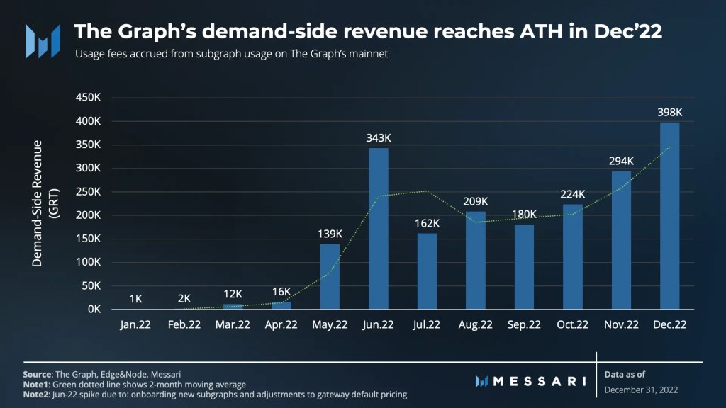 Gelir açısından Graph, 2022’nin 4. çeyreğinde sorgu ücretlerinden GRT gelirinde çeyrekten çeyreğe %66 ve yıldan yıla %6.228 artış yaşadı. Sorgu ücretlerindeki bu artışın “önümüzdeki çeyreklerde daha fazla subgraph mainnet’e taşındıkça” devam etmesi bekleniyor.