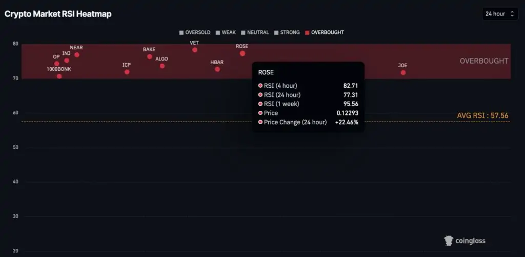 Kripto Piyasası 24 Saatlik RSI Isı Haritası: ROSE. Kaynak: CoinGlass