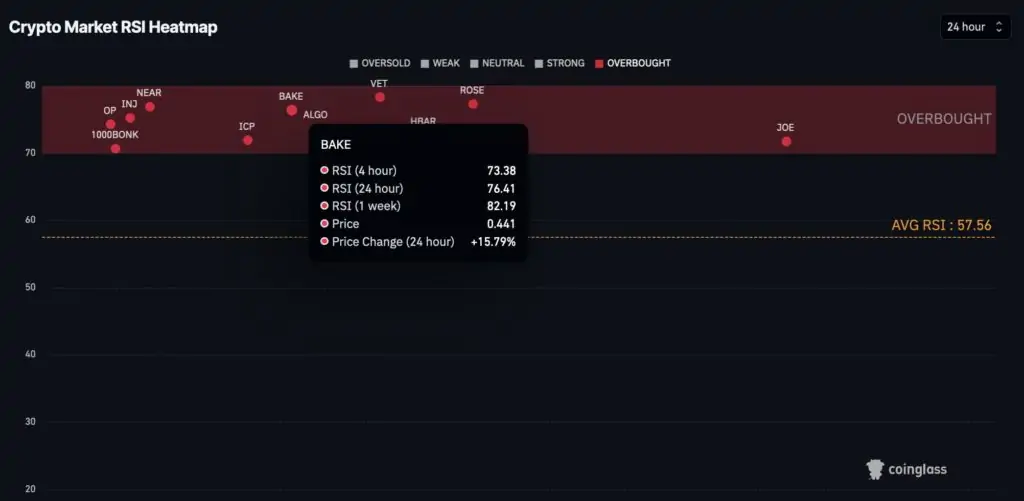 Kripto Piyasası 24 Saatlik RSI Isı Haritası: BAKE. Kaynak: CoinGlass